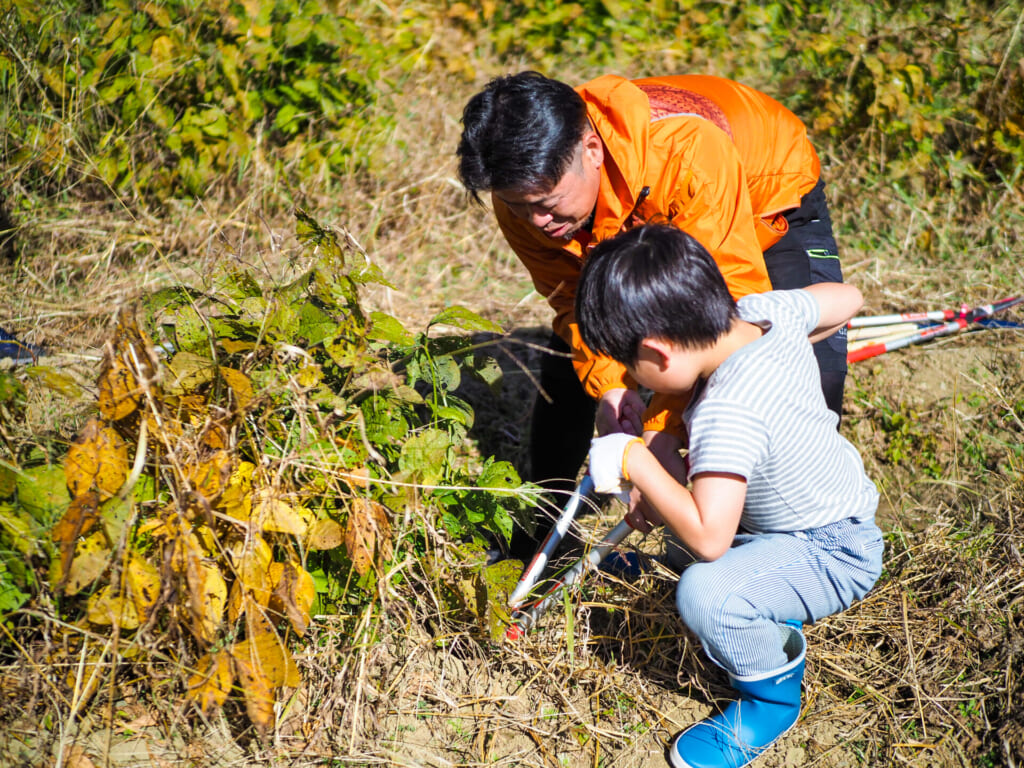 そのような黒枝豆を、地元の農家である彩遊記(*1)さんからお話を伺いながら一緒に収穫します。