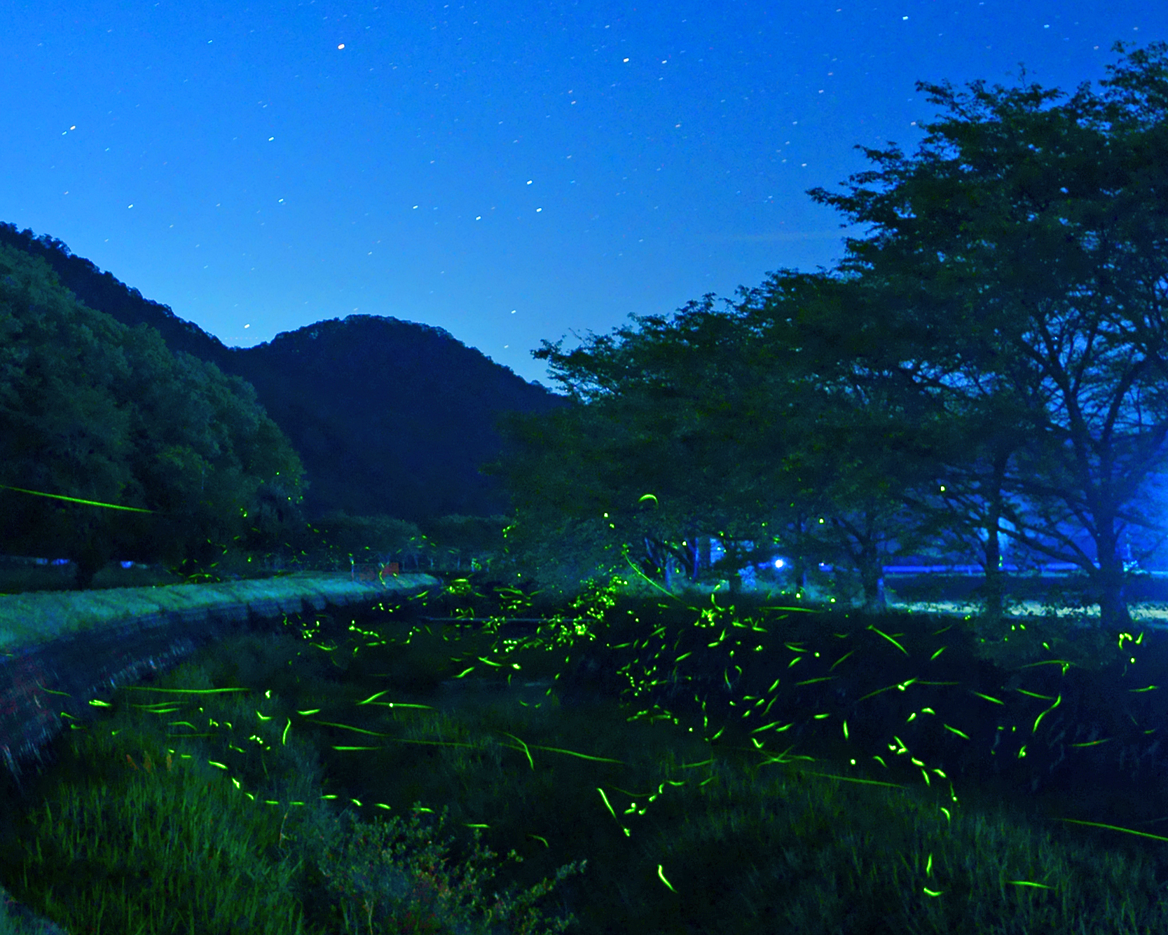都会では見ることができないたくさんのホタルの乱舞は